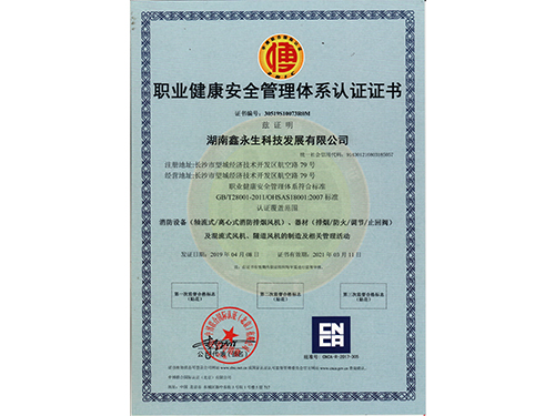 • 職業(yè)健康安全認(rèn)證體系證書(shū)